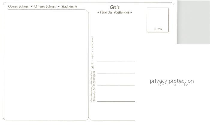 73212454 Greiz Thueringen Oberes und unteres Schloss Stadtkirche postalisch nicht gelaufen Erhaltung siehe scans [PaolaD17] KatCode: 11110016076022