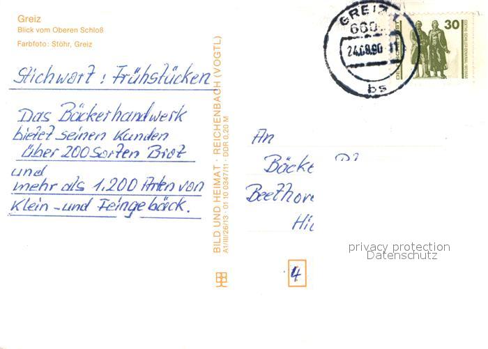72944597 alte Postkarte Greiz Thueringen Panorama Blick vom Oberen Schloss postalisch gelaufen Erhaltung siehe scans [FriedD77] KatCode: 11110016076022