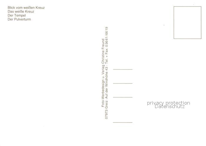 73266839 Greiz Thueringen Panorama Blick vom weissen Kreuz Tempel Pulverturm postalisch nicht gelaufen Erhaltung siehe scans [FriedD77] KatCode: 11110016076022