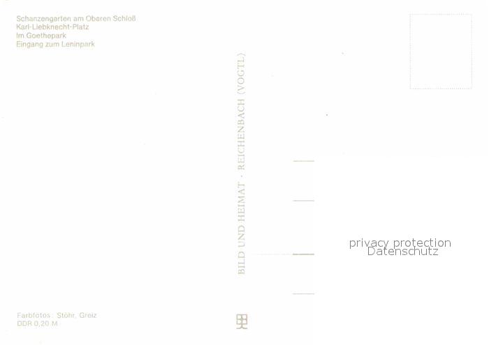 72919440 Greiz Thueringen Schanzengarten Oberes Schloss Karl Liebknecht Platz Goethepark Leninpark postalisch nicht gelaufen Erhaltung siehe scans [FriedD77] KatCode: 11110016076022
