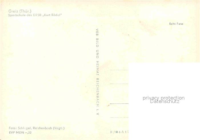 72680973 Greiz Thueringen Sportschule des DTSB Kurt Roedel postalisch nicht gelaufen Erhaltung siehe scans [LiesaD40] KatCode: 11110016076022