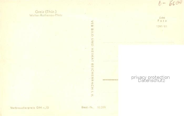 43353130 Greiz Thueringen WAlter Rathenau Platz postalisch nicht gelaufen Erhaltung siehe scans [KathaD81] KatCode: 11110016076022
