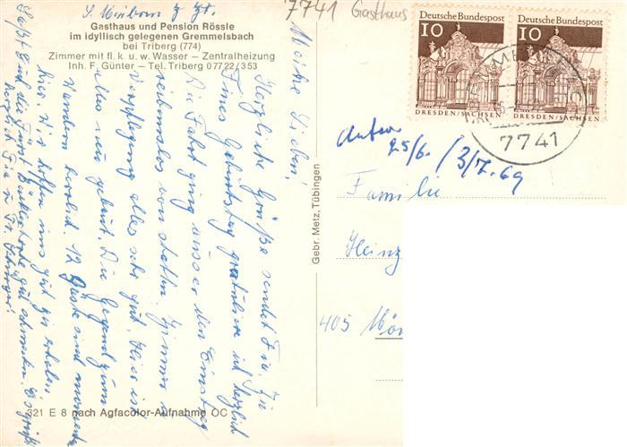 73894385 Gremmelsbach Triberg Gasthaus Pension Roessle postalisch nicht gelaufen Erhaltung siehe scans [WerneD78] KatCode: 11110008326060