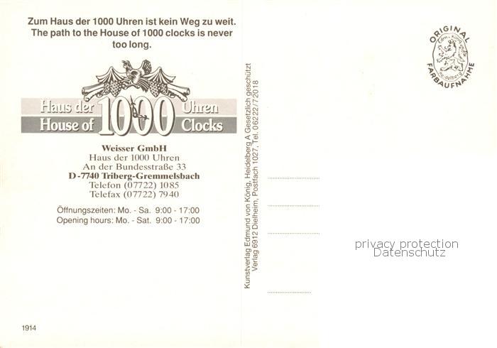 73796649 Gremmelsbach Triberg Haus der 1000 Uhren postalisch nicht gelaufen Erhaltung siehe scans [WerneD78] KatCode: 11110008326060