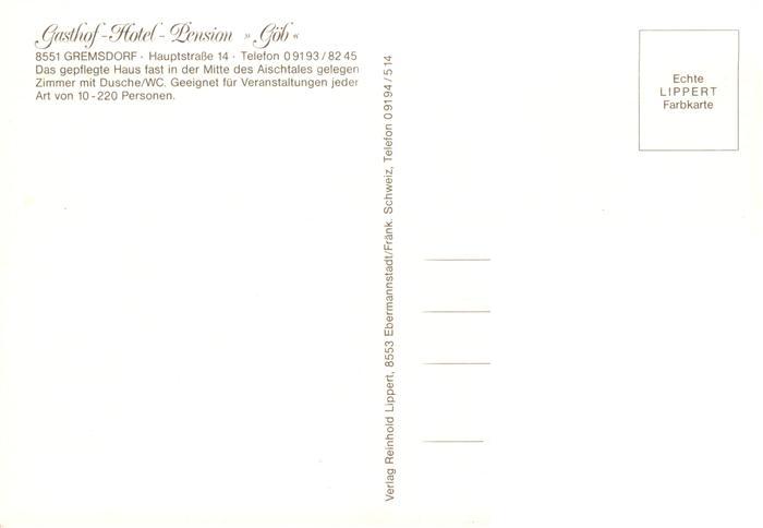 73882711 Gremsdorf Gasthof Hotel Pension Goeb postalisch nicht gelaufen Erhaltung siehe scans [WerneD78] KatCode: 11110009572126