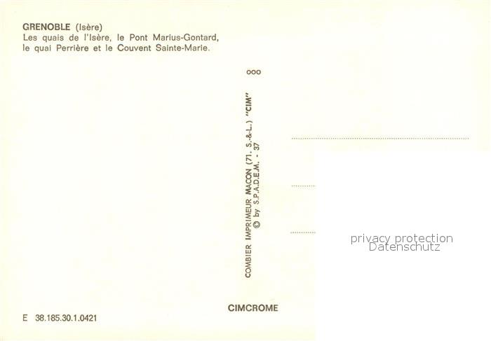 13600384 Grenoble Les quais de l’Isere le Pont Marius Gontard le quai Perriere et le Couvent Sainte Marie postalisch nicht gelaufen Erhaltung siehe scans [WerneD78] Wern Katcode 11170038138185