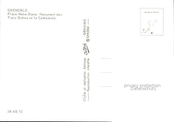 12571592 Grenoble Place Notre Dame Monument des Trois Ordres postalisch nicht gelaufen Erhaltung siehe scans [LiesaD40] KatCode: 11170038138185