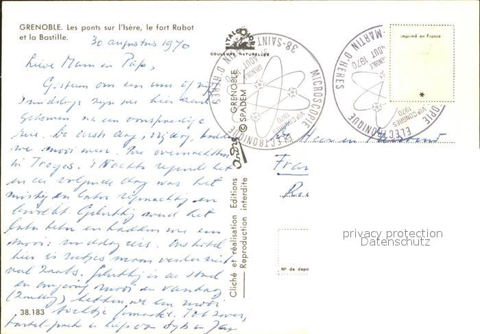 12270567 carte postale Grenoble Pont Esere Rabot Bastille postalisch gelaufen Erhaltung siehe scans KatCode: 11170038138185