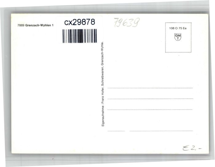 30923876 Grenzach-Wyhlen postalisch nicht gelaufen KatCode: 11110008336105