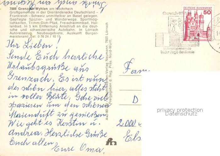 73666611 alte Postkarte Grenzach-Wyhlen Fliegeraufnahme postalisch gelaufen Erhaltung siehe scans [WerneD78] KatCode: 11110008336105