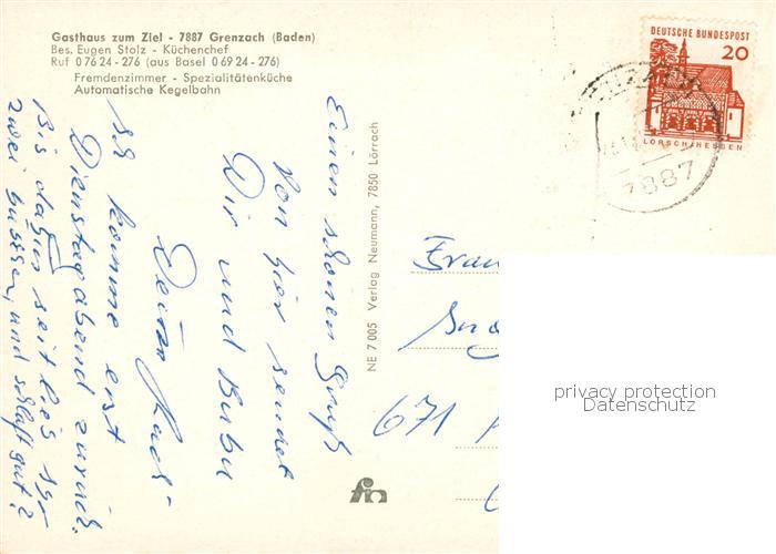 73863255 alte Postkarte Grenzach-Wyhlen Gasthaus zum Ziel Gaststube postalisch gelaufen Erhaltung siehe scans [FriedD77] KatCode: 11110008336105