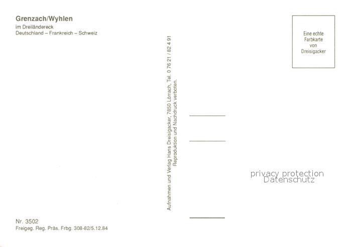 73666610 Grenzach-Wyhlen im Dreilaendereck Fliegeraufnahme postalisch nicht gelaufen Erhaltung siehe scans [WerneD78] KatCode: 11110008336105