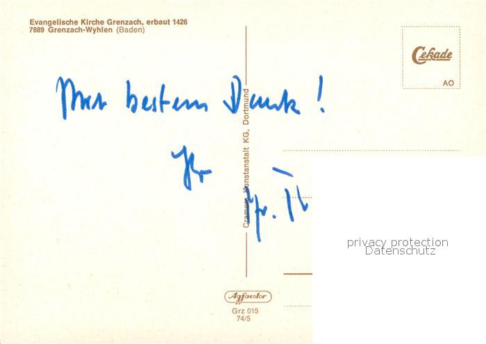 73627272 Grenzach-Wyhlen Kirche postalisch nicht gelaufen Erhaltung siehe scans [LiesaD40] KatCode: 11110008336105