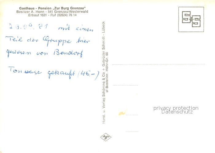 73672698 Grenzau Gasthaus Pension Zur Burg Grenzau postalisch nicht gelaufen Erhaltung siehe scans [WerneD78] KatCode: 11110007143032