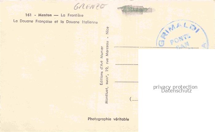 74105031 Grenze Douane Zoll Frontiere Border– Menton postalisch nicht gelaufen Erhaltung siehe scans [IrynaD87] Iryn Katcode 22060000008500