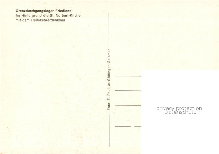 73085111 Grenze Douane Zoll Grenzdurchgangslager Friedland St. Norbert-Kirche Heimkehrerdenkmal KatCode 22060000008500