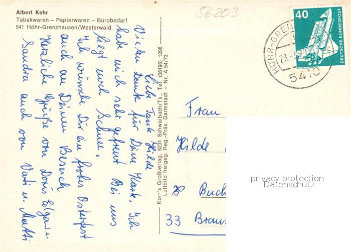 73857928 Grenzhausen Hoehr-Grenzhausen Fliegeraufnahme postalisch gelaufen Erhaltung siehe scans [FriedD77] alte Postkarte Frie Katcode 11110007143032