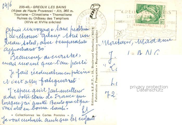 13781514 Greoux-les-Bains 04 Ruines du Chateau des Templiers postalisch gelaufen Erhaltung siehe scans [WerneD78] carte postale Wern Katcode 11170004304094