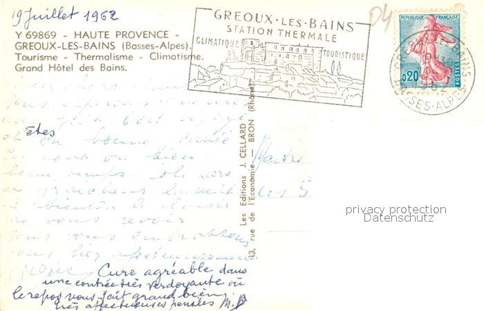 13572266 carte postale Greoux-les-Bains Grand Hotel des Bains postalisch gelaufen Erhaltung siehe scans [PaolaD17] KatCode: 11170004304094