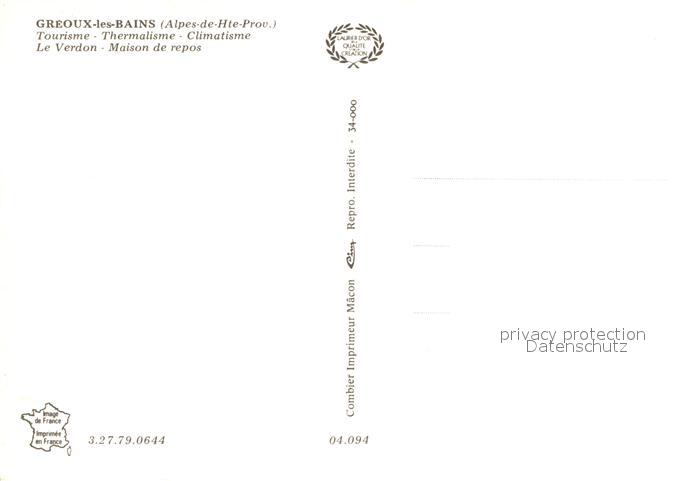 12960036 Greoux-les-Bains Le Verdon Maison de repos postalisch nicht gelaufen Erhaltung siehe scans [WerneD78] KatCode: 11170004304094