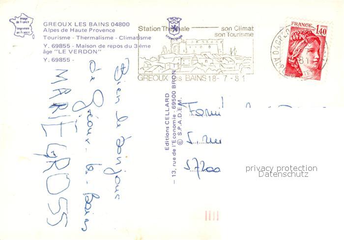 13230543 carte postale Greoux-les-Bains Maison de repos Le Verdon postalisch gelaufen Erhaltung siehe scans [FriedD77] KatCode: 11170004304094