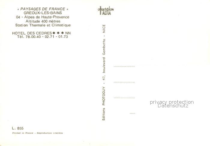13039762 Greoux-les-Bains Station Thermale et Climatique Hotel des Cedres postalisch nicht gelaufen Erhaltung siehe scans [WerneD78] KatCode: 11170004304094