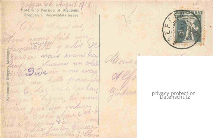 14117037 Greppen Vierwaldstaettersee LUZERN LZ Hotel Pension St. Wendelin Kuenstlerkarte postalisch gelaufen Erhaltung siehe scans [FriedD77] alte Postkarte Frie Katcode 11470120385856