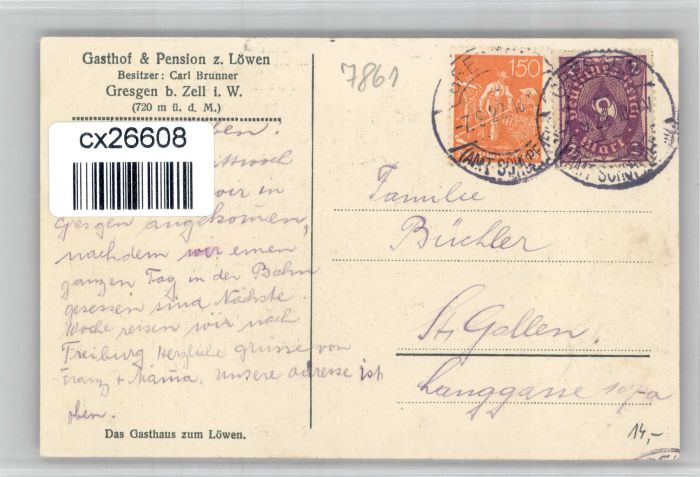 30838793 alte Postkarte Gresgen Gasthof Pension Loewen postalisch gelaufen KatCode: 11110008336103