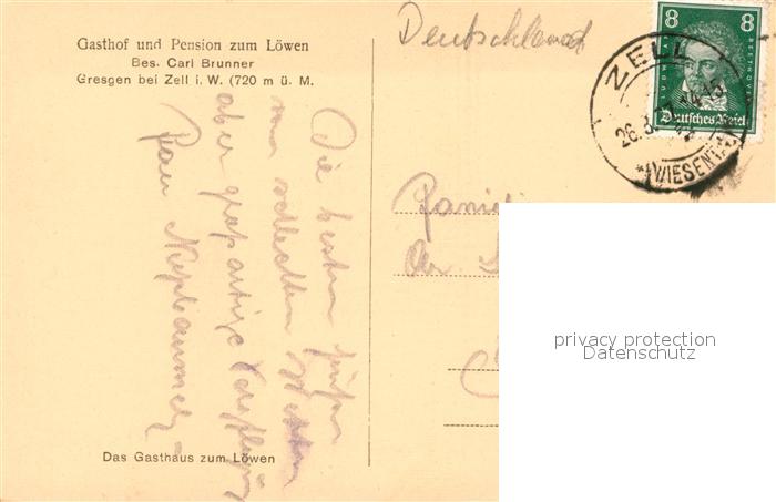 43349750 alte Postkarte Gresgen Gasthof Pension zum Loewen postalisch gelaufen Erhaltung siehe scans [FriedD77] KatCode: 11110008336103