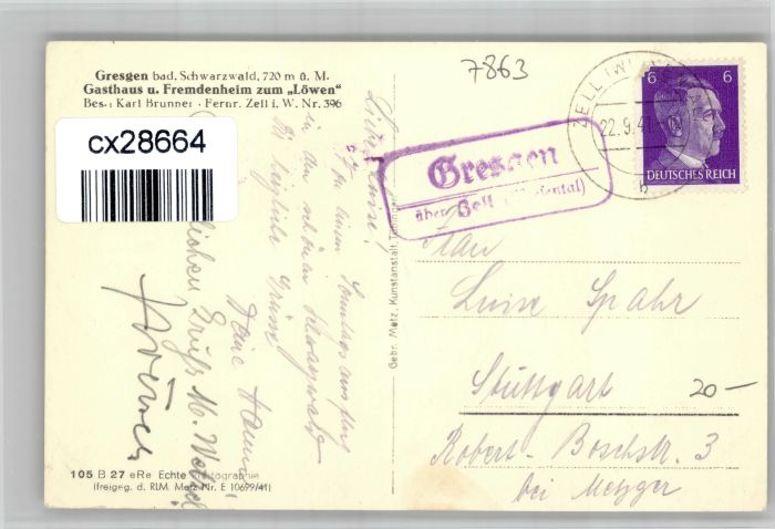 30910274 alte Postkarte Gresgen Schwarzwald Ruemmelesbuehl x postalisch gelaufen KatCode: 11110008336103