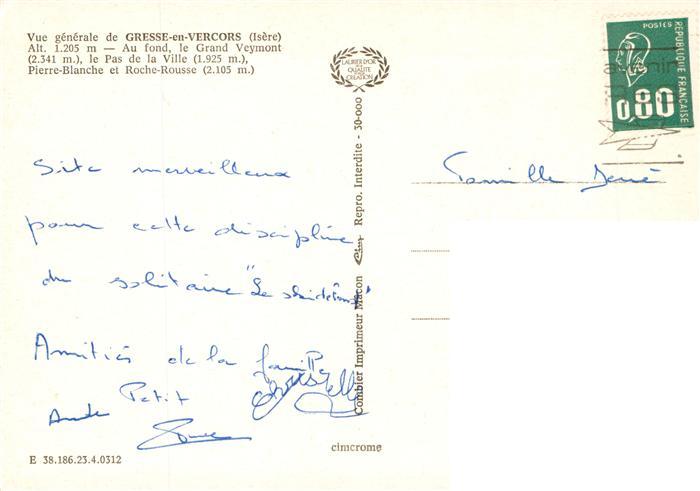 13948584 Gresse-en-Vercors 38 Isere Vue panoramique au fond le Grand Veymont Pas de la Ville Pierre Blanche et Roche Rousse Alpes postalisch gelaufen Erhaltung siehe scans [FriedD77] carte postale Frie Katcode 11170038138186