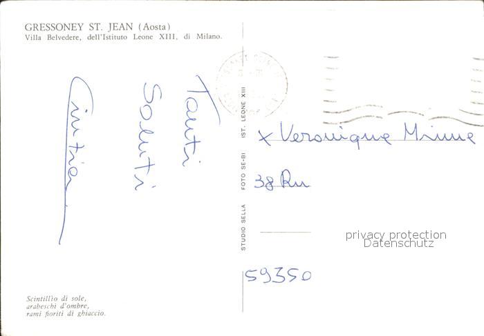 old postcard Gressoney St Jean Villa Belvedere dell’Istituto Leone postalisch gelaufen Erhaltung siehe scans