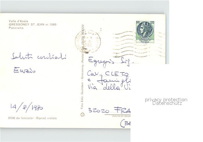old postcard Gressoney St Jean postalisch gelaufen Erhaltung siehe scans