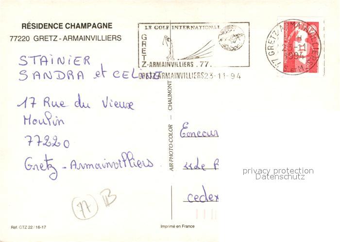 13162390 carte postale Gretz-Armainvilliers Residence Champagne vue aérienne postalisch gelaufen Erhaltung siehe scans [FriedD77] KatCode: 11170077277215