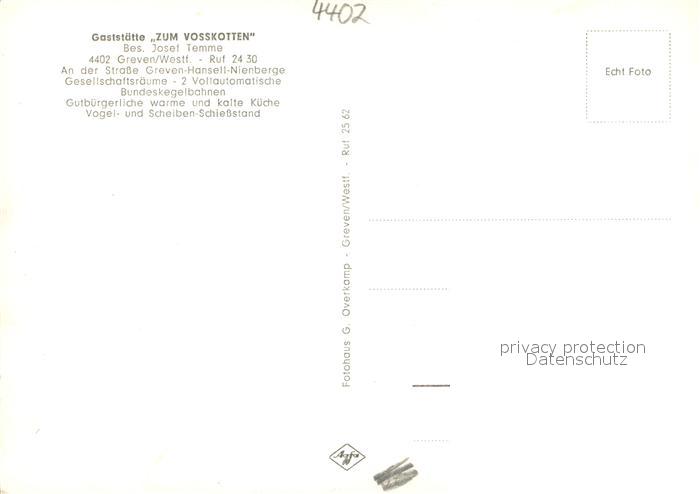 73700905 Greven Westfalen Gaststaette Zum Vosskotten Gastraum postalisch nicht gelaufen Erhaltung siehe scans [FriedD77] KatCode: 11110005566012