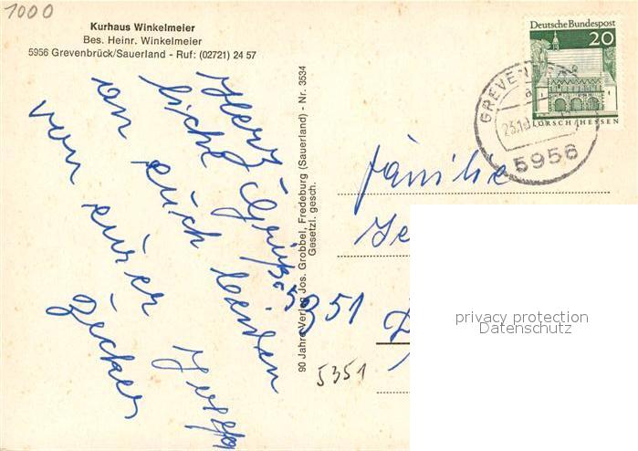 73204360 alte Postkarte Grevenbrueck Kurhaus Winkelmeier postalisch gelaufen Erhaltung siehe scans [FriedD77] KatCode: 11110005966020