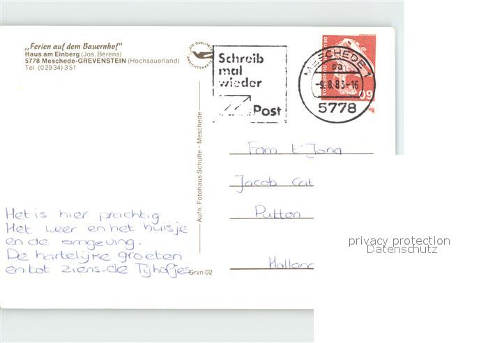 72259024 alte Postkarte Grevenstein Haus am Einberg Panorama postalisch gelaufen Erhaltung siehe scans KatCode: 11110005958032
