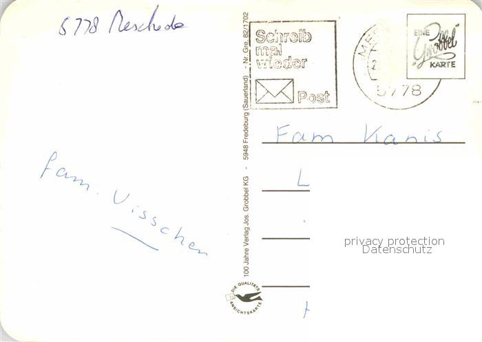 72783438 alte Postkarte Grevenstein Teilansichten Panorama Springbrunnen Kapelle postalisch gelaufen Erhaltung siehe scans [WerneD78] KatCode: 11110005958032
