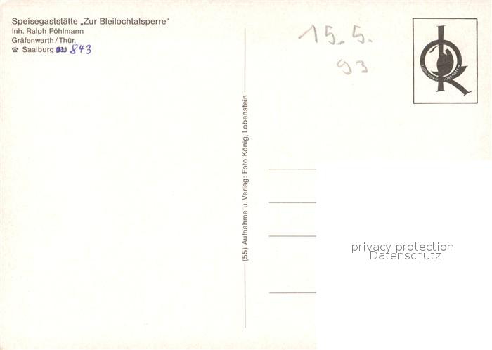 73570185 Gr?fenwarth Gastst?tte Zur Bleilochtalsperre postalisch nicht gelaufen Erhaltung siehe scans [PaolaD17] KatCode: