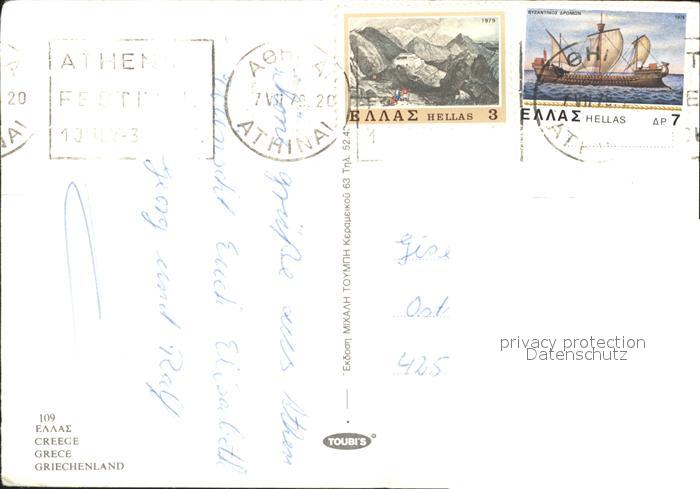old postcard Griechenland Greece Akropolis Athen Wache Denkmal Festung Weisser Turm Thessaloniki Tempel Ruine Antike postalisch gelaufen