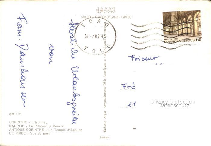 old postcard Griechenland Greece Corinthe Nauplie Antique Corinthe Le Piree postalisch gelaufen