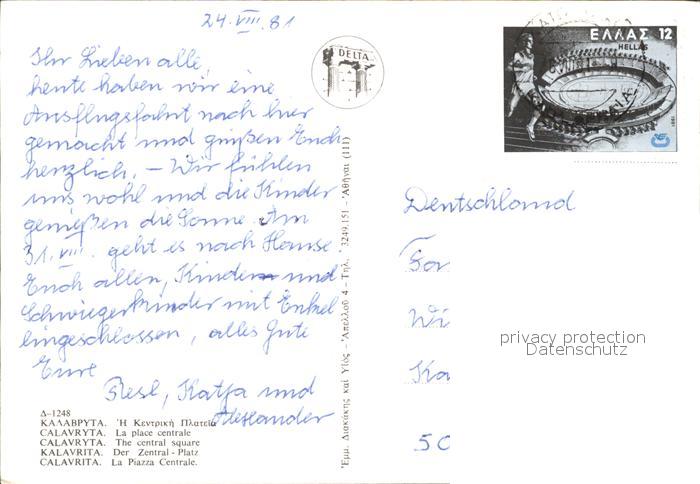 old postcard Griechenland Greece Place Centrale Eglise Kirche postalisch gelaufen Erhaltung siehe scans