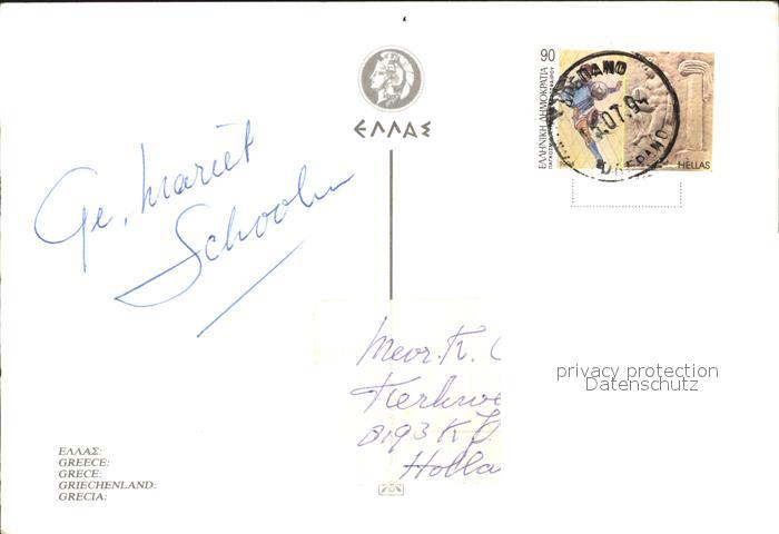 old postcard Griechenland Greece Ruine Schiff Zug postalisch gelaufen Erhaltung siehe scans