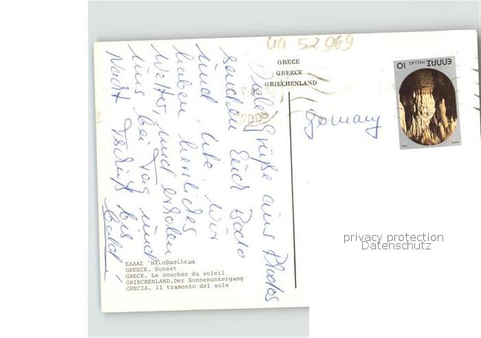 old postcard Griechenland Greece Sonnenuntergang ueberm Meer postalisch gelaufen Erhaltung siehe scans