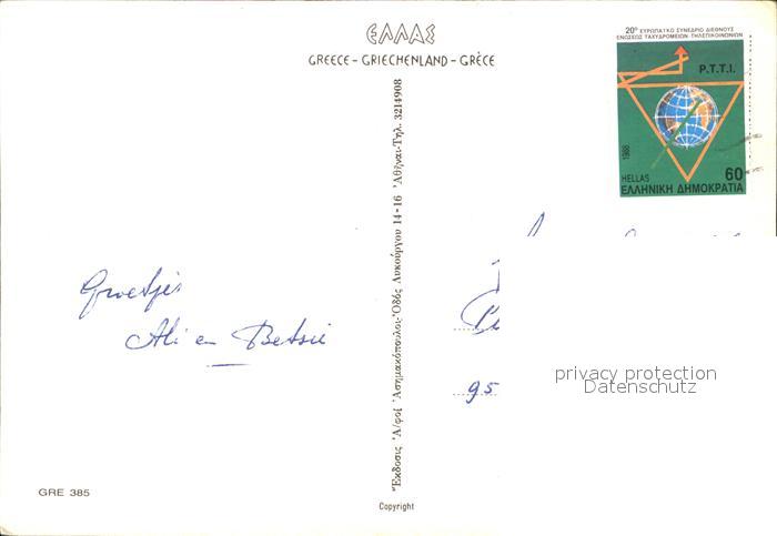 old postcard Griechenland Greece Tempel Antike Arena Knossos Palast Pontikonissi Hafen Wandmalerei postalisch gelaufen Erhaltung siehe scans