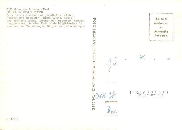 73285049 Gries Brenner Hotel Weisses Roessl postalisch nicht gelaufen Erhaltung siehe scans [NatalD47] KatCode: 11390332070313