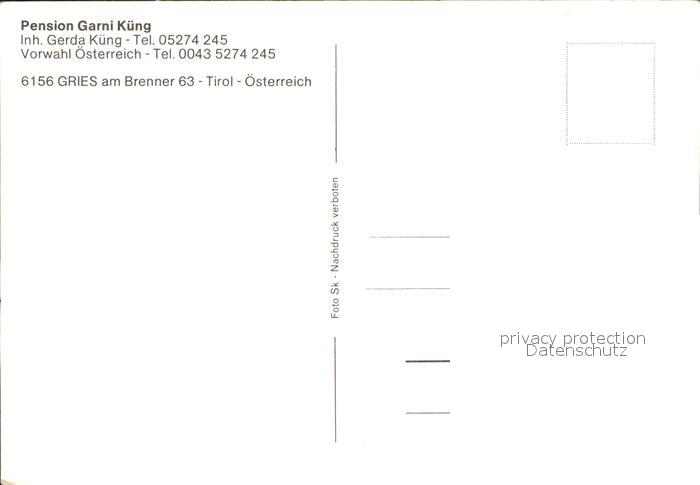 72361366 Gries Brenner Pension Garni Kueng postalisch nicht gelaufen Erhaltung siehe scans KatCode: 11390332070313