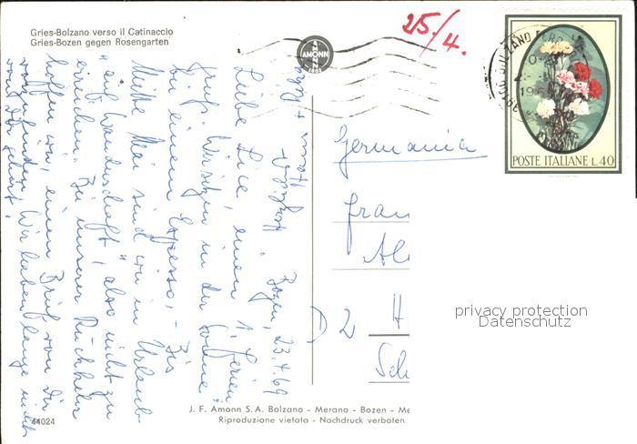 old postcard Gries-Quirein Bozen gegen Rosengarten postalisch gelaufen Erhaltung siehe scans