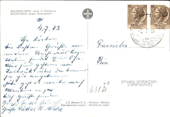 old postcard Gries-Quirein Bozen mit Rosengarten postalisch gelaufen Erhaltung siehe scans