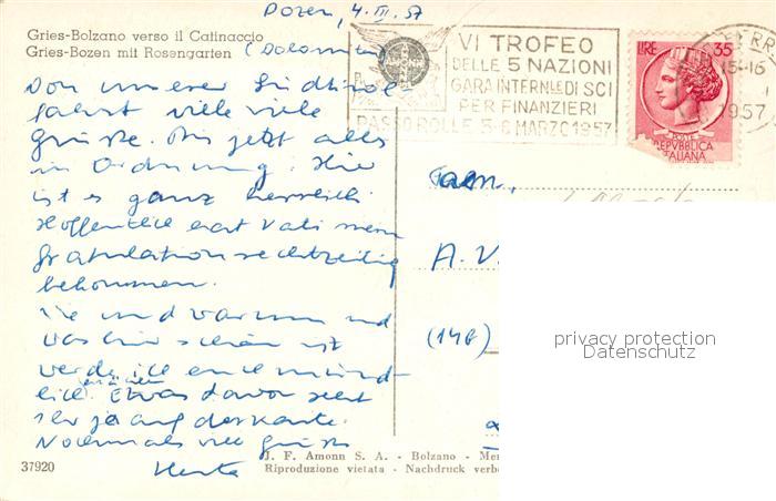 old postcard Gries-Quirein Bozen Panorama Blick zum Rosengarten Dolomiten postalisch gelaufen Erhaltung siehe scans [FriedD77]